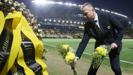 Ο παράγοντας της Ένωσης κατέθεσε στεφάνια στο μνημείο των θανόντων της κιτρινόμαυρης οικογένειας μπροστά στη Θύρα 3 των οργανωμένων φίλων του Άρη .