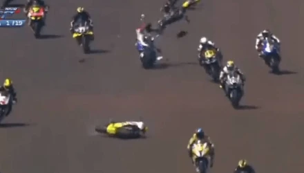 Ο Καρντόσο έχασε τον έλεγχο της μοτοσικλέτας του και έπεσε στη μέση της πίστας. Ο 42χρονος σήκωσε το χέρι του για τον δουν οι άλλοι αναβάτες, ωστόσο ο Βερίσιμο ντα Ρότσα δεν μπόρεσε να τον αποφύγει, με τη σύγκρουση να είναι σφοδρή.