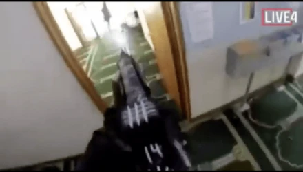 Φτάνοντας στην πόρτα του τζαμιού, ο Τάραντ πυροβολεί αδιακρίτως όποιον βλέπει μπροστά του. Οι εικόνες φρίκης θυμίζουν πολεμικό βιντεοπαιχνίδι, αλλά είναι πέρα για πέρα αληθινές.