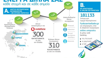 Εξίσου εντυπωσιακές όμως, είναι και ψηφιακές δυνατότητες που το Φυσικό Αέριο εξασφαλίζει. Όλοι οι πελάτες του, αλλά και το ευρύ κοινό, μπορούν να εξυπηρετούνται από την Ειδική Τηλεφωνική Γραμμή 18113, η οποία λειτουργεί 24 ώρες το 24ωρο, 7 ημέρες την εβδομάδα και φυσικά είναι απολύτως δωρεάν. Αλλά και από την ανανεωμένη και τη φιλική προς τον χρήστη, ιστοσελίδα της εταιρείας - fysikoaerioellados.gr – από την οποία μπορούν επίσης εύκολα και γρήγορα, να εξοφλήσουν τον λογαριασμό τους, κάνοντας χρήση των online υπηρεσιών, my Account, e-payment και web banking, χωρίς καμία επιπλέον επιβάρυνση.