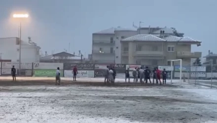 Σε χιονισμένο γήπεδο έγινε ο αγώνας. Ο Ορέστης προηγήθηκε στο σκορ με τον Ποσειδώνα να ισοφαρίζει