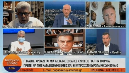 Στην εκπομπή Καλημέρα Ελλάδα μίλησε ο καθηγητής Οικονομικής Γεωγραφικής & Γεωπολιτικής, Γ. Μάζης, για την τουρκική προκλητικότητα, τη στάση Ελλάδας, Γερμανίας και την ανακοίνωση του State Department.
