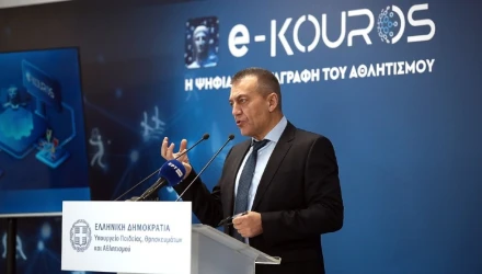 Το «όραμα» του Αναπληρωτή Υπουργού Αθλητισμού, Γιάννη Βρούτση, για την πλήρη ψηφιοποίηση του ελληνικού Αθλητισμού, υλοποιήθηκε με την παρουσίαση του «e-Κouros», της πρώτης ολοκληρωμένης ψηφιακής παρέμβασης στον χώρο του ελληνικού Αθλητισμού.