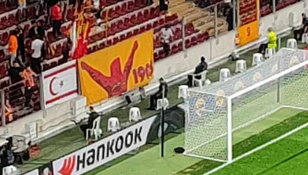 Οι οπαδοί των γηπεδούχων σήκωσαν στις κερκίδες σημαία του ψευδοκράτους, σε μία ακόμη προκλητική κίνηση.