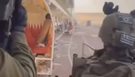 Η ελληνική σημαία φιγουράρει στο κράνος ενός Ισραηλινού στρατιώτη, σε μία επιχείρηση, στη Λωρίδα της Γάζας με Παλαιστίνιους αιχμαλώτους.