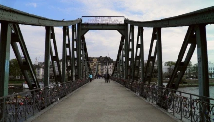 Περνώντας από μια σιδερένια πεζογέφυρα στο κέντρο της Φρανκφούρτης, δεν μπορεί παρά να εκπλαγεί κανείς διαβάζοντας μια επιγραφή σε αρχαία ελληνικά να δεσπόζει στην κορυφή της γέφυρας.
