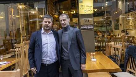 Γεύμα στο γνωστό εστιατόριο της πόλης «Επτά θάλασσες» δόθηκε από τον πρόεδρο της Ελληνικής Ποδοσφαιρικής Ομοσπονδίας, Μάκη Γκαγκάτση, στον πρόεδρο της Ευρωπαϊκής Ομοσπονδίας, Αλεξάντερ Τσέφεριν, ο οποίος συνοδευόταν από τον Θεόδωρο Θεοδωρίδη και τον Ντέγιαν Λάκοβιτς.