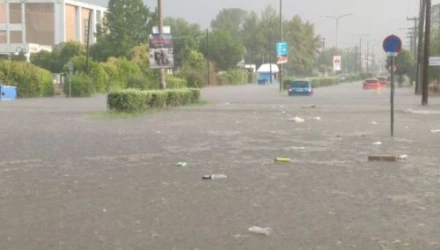 Η καλοκαιρία έδωσε τη θέση της σε μια δυνατή βροχή, η οποία συνοδεύτηκε με χαλαζόπτωση και προκάλεσε πλημμύρες στους δρόμους, με την κυκλοφορία των οχημάτων να πραγματοποιείται με αρκετές δυσκολίες.