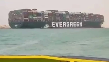 Η Evergreen Marine Corp., στην οποία ανήκει το σκάφος, ανέφερε πως «πιθανόν το πλοίο χτυπήθηκε από ριπή ανέμου» και προσάραξε. Η εταιρεία «συζητά με όλα τα μέρη, συμπεριλαμβανομένης της Αρχής που διαχειρίζεται τη διώρυγα, για να προσφερθεί βοήθεια στο πλοίο το συντομότερο δυνατόν», πρόσθεσε.