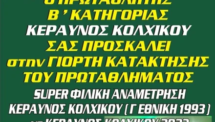 Γιορτή του ποδοσφαίρου σήμερα στο Κολχικού για την επάνοδο του Κεραυνού στην Α' κατηγορία.