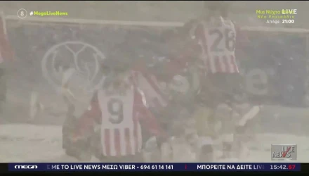 Ένα στιγμιότυπο που αποδεικνύει πως το ποδόσφαιρο μπορεί να προσφέρει θέαμα ακόμα και κάτω από τις πιο δύσκολες – και θεαματικές – καιρικές συνθήκες.