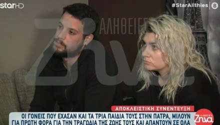 Οι γονείς των τριών κοριτσιών από την Πάτρα που έχασαν τη ζωή τους, έλυσαν τη σιωπή τους για πρώτη φορά μπροστά στις κάμερες και μίλησαν για όλους και για όλα. Για το πώς πέθαναν τα τρία αδερφάκια, για την πορεία της έρευνας που βρίσκεται σε εξέλιξη και για τις διαρροές που τους έχουν προκαλέσει όπως λένε οργή. Υπογραμμίζουν ότι δεν έχουν να φοβούνται το παραμικρό.