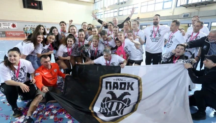Η κατάκτηση του 4ου σερί νταμπλ πανηγυρίστηκε έξαλλα από τις παίκτριες του γυναικείου χάντμπολ του ΠΑΟΚ.