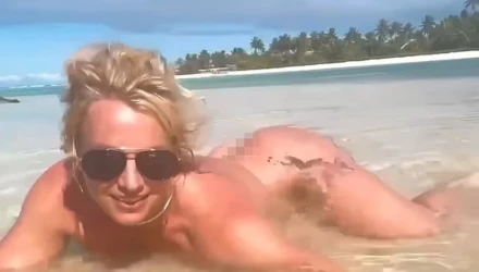 Σε νέο της βίντεο στο Instagram, φαίνεται ολόγυμνη μέσα στη θάλασσα και στη λεζάντα της δημοσίευσής της έγραψε: «Γεια στον κώ@@ μου».