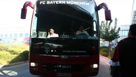 Στις 16:15 έκανε την εμφάνισή του το πούλμαν των Βαυαρών με περίπου 80-100 άτομα με διακριτικά της ομάδας να τους επιφυλάσσουν θερμή υποδοχή.