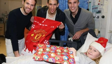 Ο κορυφαίος παίκτης της ομάδας εφέτος Νταβίντ Ντε Χέα καθώς και οι Ρόμπιν Φαν Πέρσι, Χουάν, Μάτα , Άνχελ Ντι Μαρία , Ντάρεν Φλέτσερ, Μάρκος Ρόχο, Φιλ Τζόουνς και Κρις Σμόλινγκ αποτέλεσαν την εν λόγω μέσα στο πνεύμα των ημερών «αποστολή» των «κόκκινων διαβόλων» που πρόσφεραν στους μικρούς πέραν των δώρων τους μία αλησμόνητη.