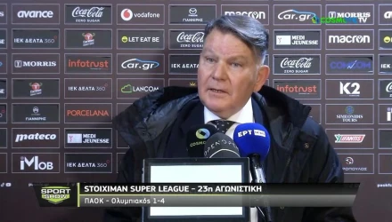 «Μετά από το παιχνίδι με τον Άρη, πριν από λίγες εβδομάδες, είχα πει ότι μην ξεγράφετε τον Ολυμπιακό. Έβλεπα την προσπάθεια για τις μεταγραφές και ευτυχώς με πρωτοβουλία του Βαγγέλη Μαρινάκη, αλλά και του Ντάρκο Κοβάσεβιτς ήρθε ένας μεγάλος προπονητής, αντάξιος της ομάδας. Το είδαμε την Πέμπτη, το είδαμε και σήμερα… Είμαστε πράγματι ευτυχισμένοι. Κάναμε ευτυχισμένο τον κόσμο μας… Είναι επιβεβλημένο, σύμφωνα με την αγωγή και την παιδεία μου, αλλά και την άποψή μου για το ποδόσφαιρο, είναι να ευχαριστήσω εκ μέρους όλων μας, όλη την οικογένεια και τον οργανισμό του ΠΑΟΚ για την άψογη και ευρωπαϊκή φιλοξενία. Αυτό είναι το ποδόσφαιρο και πρέπει όλοι να καταλάβουν… ότι… Υπάρχει ένας εχθρός, ένας που το δηλητηριάζει, που τροφοδοτεί την εγκληματική οργάνωση. Ο κόσμος θέλει ποδόσφαιρο. Ας κερδίσει ο καλύτερος. Θέλω να πω ότι είμαστε ευτυχισμένοι, αλλά και προβληματισμένοι. Γιατί; Βλέπουμε τι γίνεται και στα άλλα γήπεδα, στα άλλα παιχνίδια. Το ποδόσφαιρο δεν καθορίζεται από τα μεγάλα ματς, από τις μεγάλες νίκες, αλλά από αυτούς, τους επίορκους διαιτητές. Ο μεγάλος εχθρός είναι ένας… Πρέπει και ο κ. Σαββίδης και ο κ. Αλαφούζος να αντιληφθούν ότι αυτά που έλεγα, είναι η απτή πραγματικότητα. Να τελειώνουμε με την εγκληματική οργάνωση».