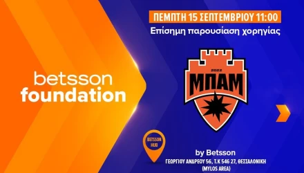 H επίσημη ανακοίνωσης Χορηγίας της Μπαμ FC από τη Betsson θα πραγματοποιηθεί στον σύγχρονο και φιλόξενο πολυχώρο Μύλος Θεσσαλονίκης, Γ. Ανδρέου 56, 546 27 όπου στεγάζεται το Betsson Hub, την Πέμπτη 14 Σεπτεμβρίου και ώρα 11:00.