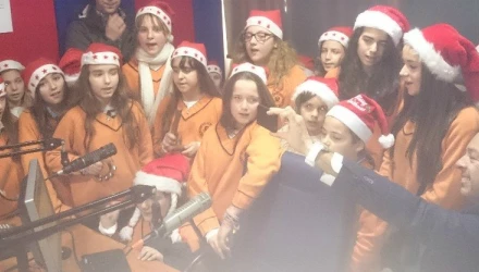 Οι υπέροχες φωνές από τα παιδιά της χορωδίας του Αριστοτελείου Κολλεγίου ψάλλουν ζωντανά στον αέρα του Αθλητικού Metropolis τα κάλαντα