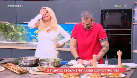 Στην κουζίνα του πλατό πήγε η Ελένη Μενεγάκη προκειμένου να δει από κοντά τη συνταγή του Γιώργου Τσούλη για την χορτόπιτα. Και εκεί η έμπειρη παρουσιάστρια προχώρησε σε ένα...επικό σαρδάμ!