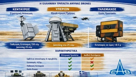 Η Ελληνική Αεροπορική Βιομηχανία (ΕΑΒ), αξιοποιώντας την εμπειρία από το πεδίο των επιχειρήσεων, έχει αναπτύξει ένα ολοκληρωμένο οικοσύστημα anti-drone. Η συνδυαστική χρήση των συστημάτων Κένταυρος, Υπερίων και Τηλέμαχος δημιουργεί μια πολυεπίπεδη αρχιτεκτονική, ικανή να αντιμετωπίσει από μεμονωμένες απειλές μέχρι οργανωμένα σμήνη drones.
