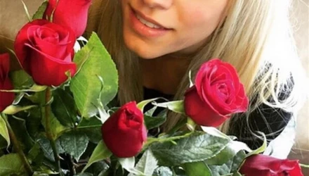 Η παρουσιάστρια πόζαρε χωρίς ίχνος μακιγιάζ στο πρόσωπό της και κρατώντας κόκκινα τριαντάφυλλα, γράφοντας: