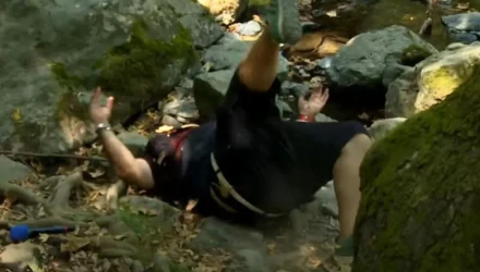 Συγκεκριμένα, όπως φαίνεται στο βίντεο που ακολουθεί, ο Γρηγόρης Αρναούτογλου κάνει πεζοπορία μέσα στη φύση μαζί με έναν συνεργάτη, όταν κάποια στιγμή σκοντάφτει σε μία ρίζα δέντρου με αποτέλεσμα να κουτρουβαλήσει σε μια ρεματιά και να βρεθεί ανάσκελα στο έδαφος.