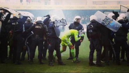 Ο πορτιέρο του «τριφυλλιού» ανήρτησε φωτογραφία στο Twitter με τον ίδιο να επιχειρεί απεγνωσμένα να αποχωρήσει από τον αγωνιστικό χώρο εν μέσω βροχής αντικειμένων και ασφυκτικού αστυνομικού κλοιού, σχολιάζοντας: «Χάρη στη φανταστική αστυνομία έφυγα από το γήπεδο ασφαλής χθες. Καλή νίκη, πάντως».