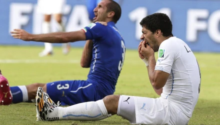 Ο Ουρουγουανός θα βρεθεί αφ' ενός με τον Πατρίς Εβρά με τον οποίο είχαν κόντρα ρατσιστικού περιεχομένου στην Αγγλία, αφ' ετέρου με τον Τζόρτζιο Κιελίνι, κάτι λιγότερο από ένα χρόνο μετά το δάγκωμα του Ουρουγουανού φορ στον Ιταλό αμυντικό στο Μουντιάλ της Βραζιλίας.