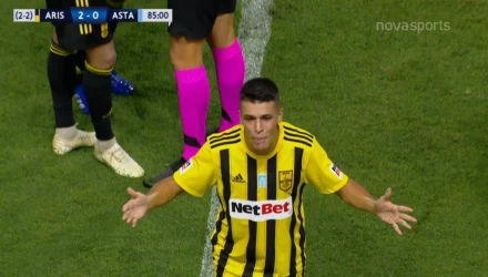 Ο Άρης είχε κάνει το 2-0 με τον Σάσα αλλά στο 86' άλλαξαν οι ισορροπίες καθώς ο διαιτητής απέβαλε με δεύτερη κίτρινη κάρτα τον Ματέο Γκαρσία.