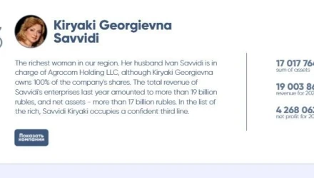 Η ιστοσελίδα «rostovgazeta.ru» έκανε μία λίστα με το top-100 των πιο πλούσιων ανθρώπων της περιοχής του Ροστόφ με βάση στοιχεία ως το τέλος του 2020.
