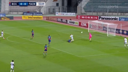 Μια πολύ καλή κάθετη πάσα του Νινούα, το γύρισμα του Τσόλακ στον Πέλκα και το σουτ. Γκολ, όμως δεν ήρθε με τον Γκαραβέλη να αποκρούει κυρίως με το ένστικτο.
