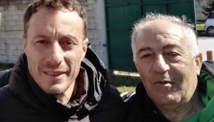 Στη φώτο ο υπεύθυνος ακαδημιών του ΠΑΟΚ Γ. Χ. Γεωργιάδης, με τον Απόστολο Γκόλφο, μέλος του Δ Σ της Νίκης, την ώρα του αγώνα.