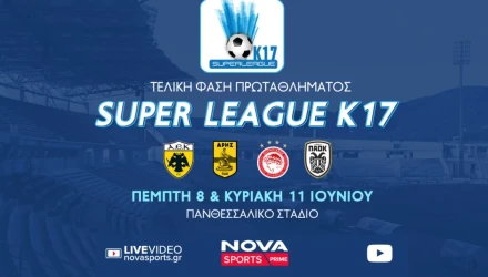 17:00 SuperLeagueK17 – Τελικός Novasports Prime και στο YouTube κανάλι του Novasports σε περιγραφή του Αποστόλη Λάμπου και ρεπορτάζ του Γιώργου Αργυρόγλου