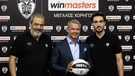 Στην κεντρική σάλα του γηπέδου, στο παρκέ, εκεί όπου παίζεται το παιχνίδι και γίνεται η μεγάλη προσπάθεια των παικτών του ΠΑΟΚ, ανακοινώθηκε η ανανέωση της συνεργασίας με τη winmasters, τη μεγάλη στοιχηματική εταιρία που δραστηριοποιείται με επιτυχία χρόνια στην Ελλάδα και είναι ο Μεγάλος χορηγός της ΚΑΕ ΠΑΟΚ.