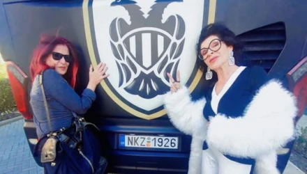 Η Πωλίνα ανάρτησε φωτογραφία στο πρφίλ της στο Facebook, μπροστά από το λεωφορείο της ΠΑΕ ΠΑΟΚ, όπου πόζαρε μαζί με τη Σοφία Βόσσου, γράφοντας: