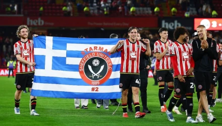 Sheffield United fans paraded a Greek flag around the pitch in tribute to the late George Baldock following their play-off win tonight.