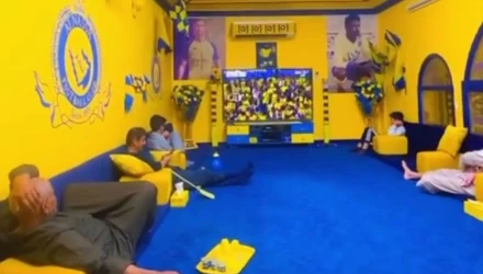 Σ' έναν εντυπωσιακό χώρο που πρωταγωνιστούν μόνο το κίτρινο και το μπλε, τα χρώματα δηλαδή του συλλόγου, οι φίλαθλοι της Αλ Νασρ μπορούν να δουν τους αγώνες σε αναπαυτικές πολυθρόνες, ενώ στα αριστερά της οθόνης υπάρχει μία μεγάλη αφίσα του Πορτογάλου σταρ.