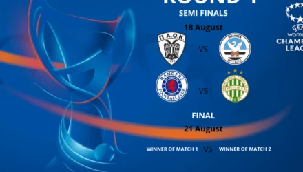 Οι «Ισόβιες Πρωταθλήτριες» θα αντιμετωπίσουν, σε ελληνικό έδαφος, την Σουόνσι από την Ουαλία στις 18 Αυγούστου, με το ζευγάρι του δεύτερου ημιτελικού να είναι το Ρέιντζερς-Φερεντσβάρος.