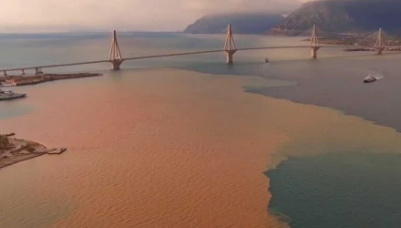 Η θάλασσα γίνεται καφέ και οι εικόνες από drone πάνω από τη γέφυρα στο Ρίο, δείχνουν την αλλαγή σκηνικού που έφερε η κακοκαιρία.