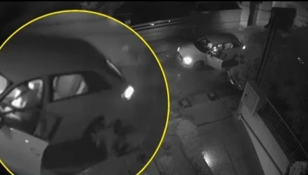 Στα πλάνα από την κάμερα ασφαλείας του σπιτιού του, ο δημοσιογράφος και εκδότης φτάνει με το αυτοκίνητo έξω από το σπίτι του στα Βριλήσσια.