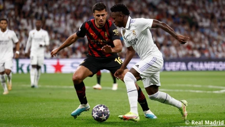 Στο 13΄ η ομάδα του Πεπ Γκουαρδιόλα απείλησε ξανά, με τον Ρόδρι να επιχειρεί το σουτ και τον Κουρτουά να αποκρούει σωτήρια σε κόρνερ και στο αμέσως επόμενο λεπτό το διαγώνιο σουτ του Χάαλαντ μπλόκαρε ο υψηλόσωμος γκολκίπερ των Μαδριλένων.