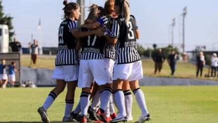 Ο Δικέφαλος μπήκε δυνατά στο παιχνίδι και έφτασε πολύ κοντά στο 0-1 στο 5ο λεπτό, καθώς η Χαλατσογιάννη μέσα από την περιοχή σημάδεψε το οριζόντιο δοκάρι.