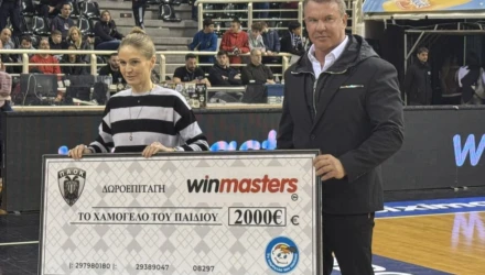 Στο πλαίσιο του διαγωνισμού HALF COURT CHALLENGE, που πραγματοποιήθηκε για δεύτερη χρονιά, με δύο φίλους του Δικεφάλου να επιχειρούν ένα σουτ από το κέντρο του γηπέδου, ο Διευθύνων Σύμβουλος της winmasters κ. Θωμάς Τζόκας αποφάσισε να δοθεί σε ίδρυμα το ποσό των 2.000€, σε περίπτωση που δεν θα υπήρχε νικητής.