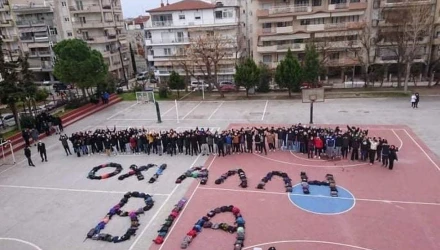 Οι μαθητές βγήκαν στον περιβάλλοντα χώρο του σχολείου, όλοι μαζί και με τις τσάντες τους να σχηματίζουν την φράση, «Όχι άλλη βία», στη μνήμη του Άλκη.