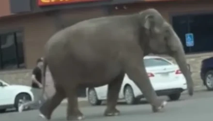 Ο τοπικός σερίφης, Εντ Λέστερ, δήλωσε ότι ο ελέφαντας «τρόμαξε από ένα όχημα και το έσκασε για λίγο». Εικόνες από την περιοχή δείχνουν το ζώο να περπατά γύρω από λεωφόρο, επισκιάζοντας τα οχήματα.