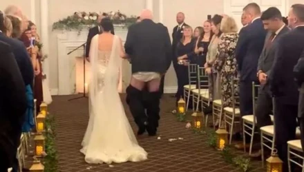 Μια αρκετά αμήχανη στιγμή καταγράφηκε σε έναν γάμο. Την ώρα που η νύφη συνοδευόταν από τον πατέρα της στην εκκλησία, το παντελόνι του έπεσε και αποκάλυψε το εσώρουχό του.