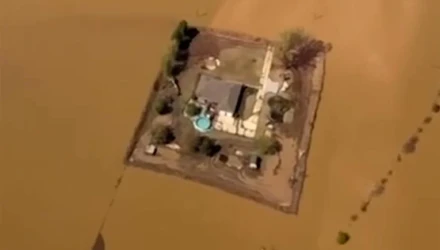 Κατασκευάζοντας ένα δικό της ανάχωμα γύρω από την ιδιοκτησία της, η οικογένεια κατάφερε να σώσει το σπίτι της από τις καταστροφικές πλημμύρες «βιβλικών» διαστάσεων.