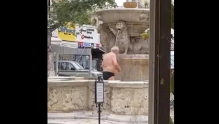 Ένας ηλικιωμένος έφτασε στην κεντρική πλατεία, στα λιοντάρια, έβγαλε τα ρούχα του και μπήκε στο σιντριβάνι με το εσώρουχο και τα πέδιλα με τις κάλτσες. Πριν μπει μάλιστα στο σιντριβάνι, έκανε και τον σταυρό του.