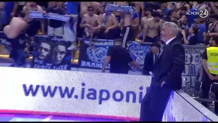 Ο προπονητής των κυανόλευκων, Γιώργος Σιγάλας, μετά τη λήξη του πρώτου μέρους δεν έφυγε αμέσως για τα αποδυτήρια, ψάχνοντας μια στιγμή ηρεμίας, φανερώνοντας την πίεση που έχει να διαχειριστεί.